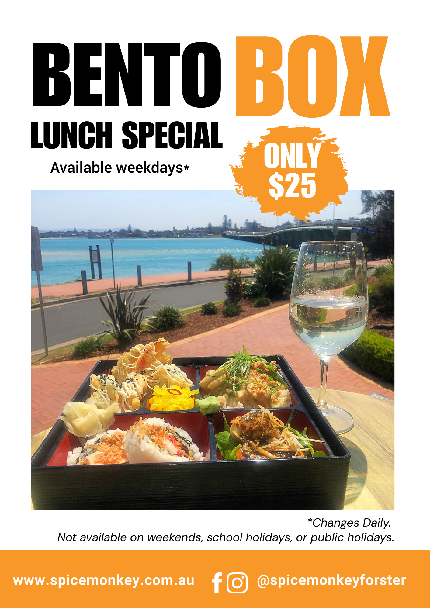 Enjoy great vibes, delicious food, cocktails, and stunning Wallis Lake views! 🍹🌅 See you there! @spicemonkeyforster